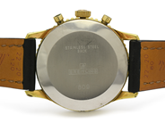 BREITLING, Geneve, Cosmonaute, Cal Venus 178 (TJ), Serial no. 1163852, Ref no. 809, chronograph, men´s wristwatch, 41 mm, gold plated (20 micron), manual winding, plastic crystal, 24-hour indicator, damaged case, rotatable slide roule, leather strap, buckle (not contemporary), approx 1967.