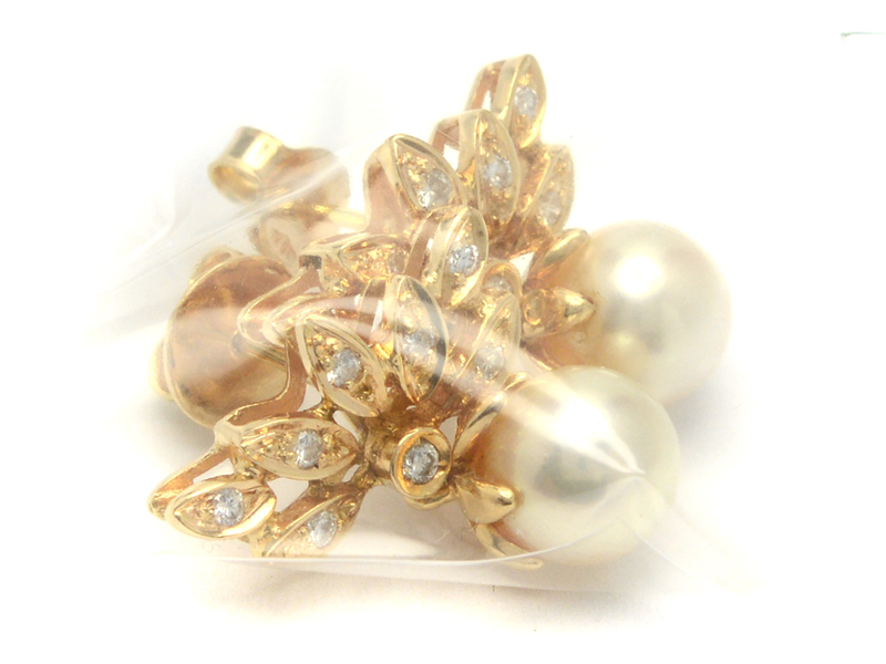 Earrings 18K 7,9g with pearls and diamonds 16xca.0,02ct