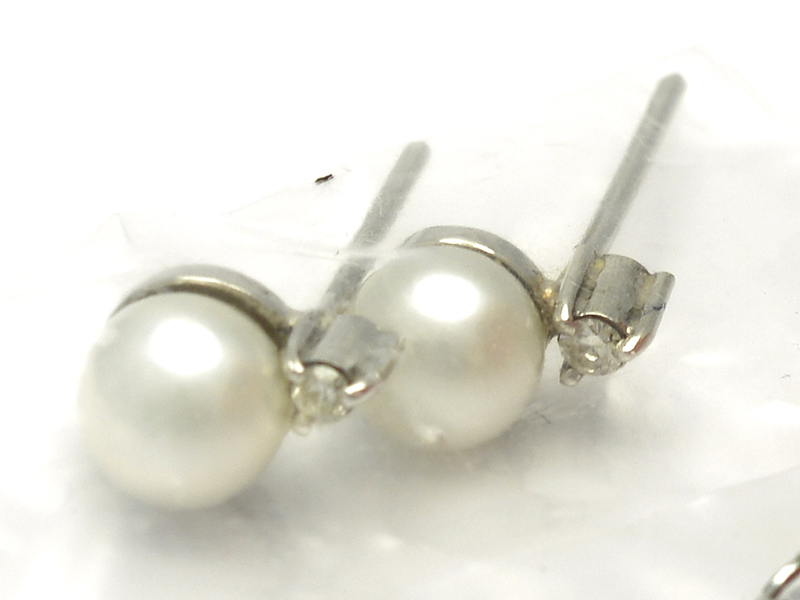 Earrings 1 pair, 18K white gold, 2,8g, with cultured pearls 2 items Ø6,7mm and diamonds 2x0,03ct, missing backings