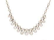 A FRINGE NECKLACE, 14K gold, 44 spectacle-set circular cabochon cut moonstones, length 38,9 cm, weight 9,5 g.