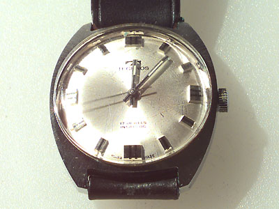 TECHNOS, men´s wristwatch, vitmetall, manual wind, plastic crystal.