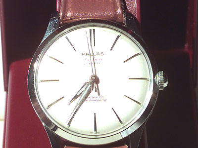 PALLAS, De Luxe, men´s wristwatch, 21 rubies, vitmetall, plastic crystal, mint, case, approx 1960.