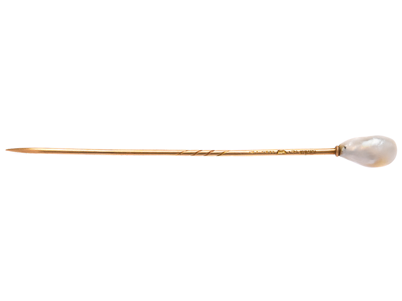 PIN, 18K gold, drop shaped pearl, CG Hallberg Stockholm 1912, weight 1,9 g, original box.