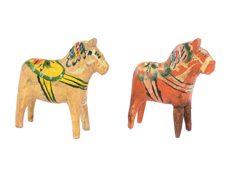 Dalahästar 2 items, height 4,4-4,5cm, utbytta bone, damages
