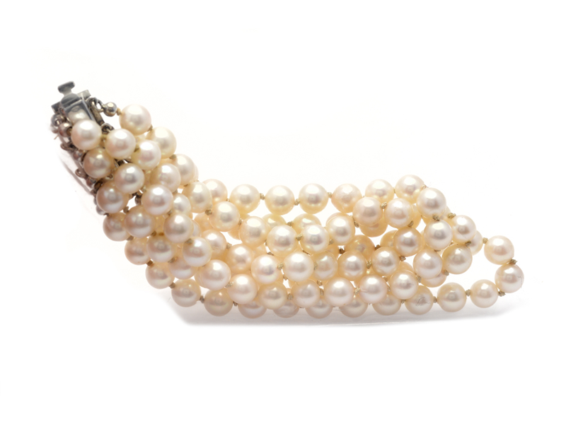 Pearl bracelet with cultured freshwater pearls, 4-strand, clasp 18K white gold, 20cm