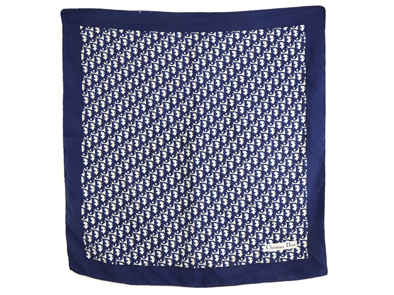 SCARF, CHRISTIAN DIOR, vintage, monogram in dark blue and white, 100% silk, 80x80cm