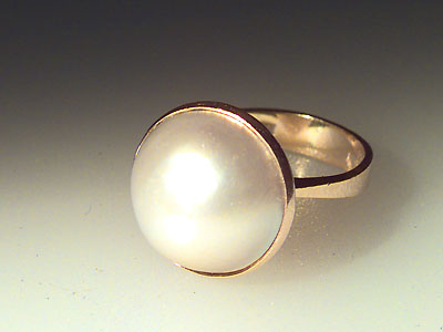 GOLDRING 18CT weight 8.7 g with mabé ringsize. 17 mm