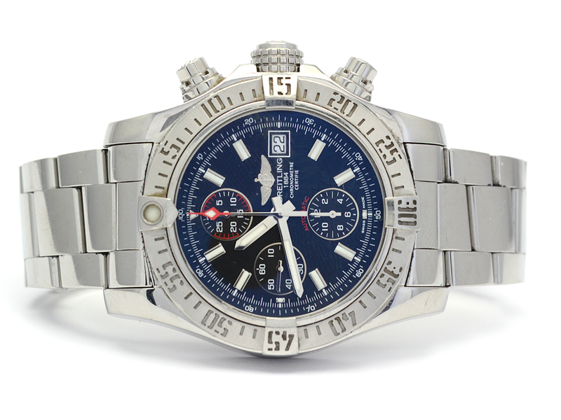 Breitling, Avenger II, men´s wristwatch, steel, ref no.: A13381, snr: 2725184, chronograph, date, scratched