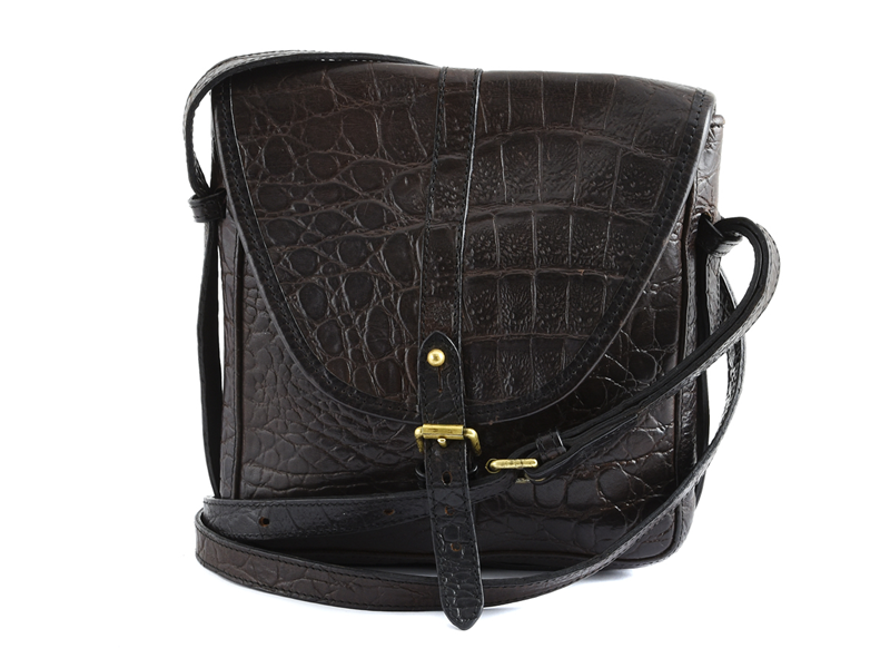 BAG, MULBERRY, vintage, dark brown embossed leather (Nile), adjustable shoulderstrap,18x20x4 cm, dustbag.