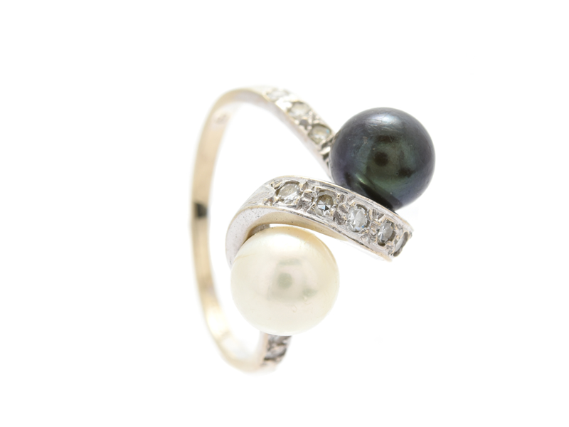 RING, 18K white gold, 2 cultured pearls, 11 eight cut diamonds approx 0,11 ctw, approx W/VS, size 16,75 mm, weight m3,5 g, a diamond with damaged culet, weak settings.