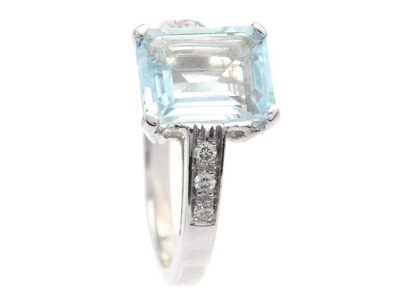RING, 18K white gold, aquamarine approx 2,10 ct, 6 brilliant cut diamonds approx 0,10 ctw size 16,25 mm, weight 4,6 g.