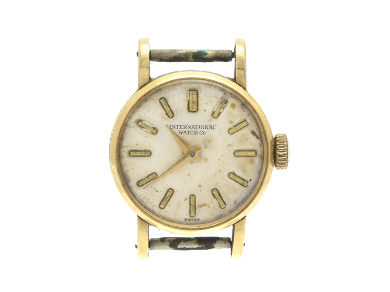 INTERNATIONAL WATCH Co, ladie´s wristwatch, 19,5 mm, Cal 41 (Inca), Serial no. 1575864, Case no. 1600633, 18K gold, manual winding, plastic crystal, restored dial, damaged dial, approx 1961.