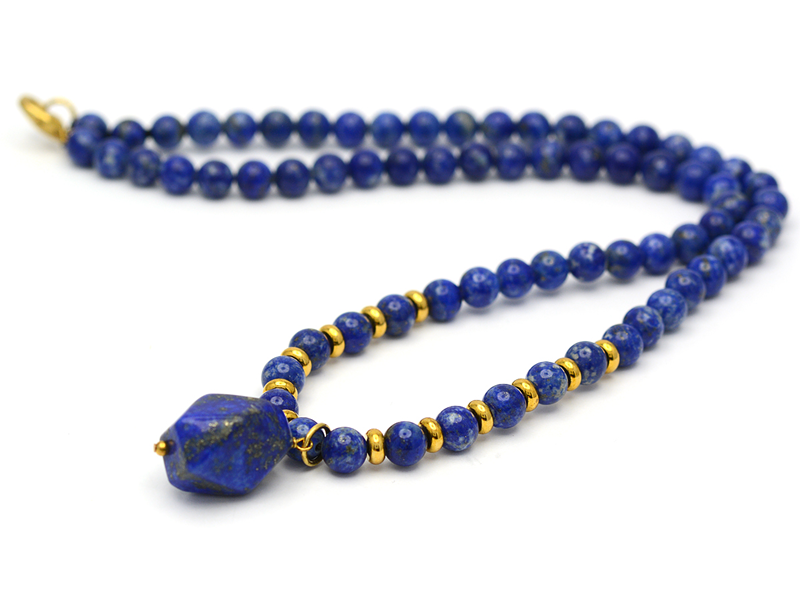 NECKLACE, lapis lazuli, beads and clasp in yellow metal, length 45 cm.