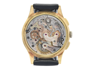HEUER, chronograph, Cal Valjoux 23, Serial no. 403763, Ref no. 418, Case no. 61291, men´s wristwatch, 35,5 mm, 18K gold, manual winding, plastic crystal, case signed ED.HEUER & Co, leather strap, approx 1945.