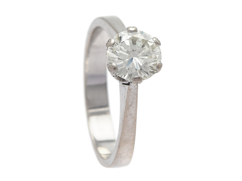 SOLITAIRE RING, 18K white gold, brilliant cut diamond according to engraving 1,00 ct, stl 16,5 mm approx Light Yellow/VS2, weight 4,0 g.