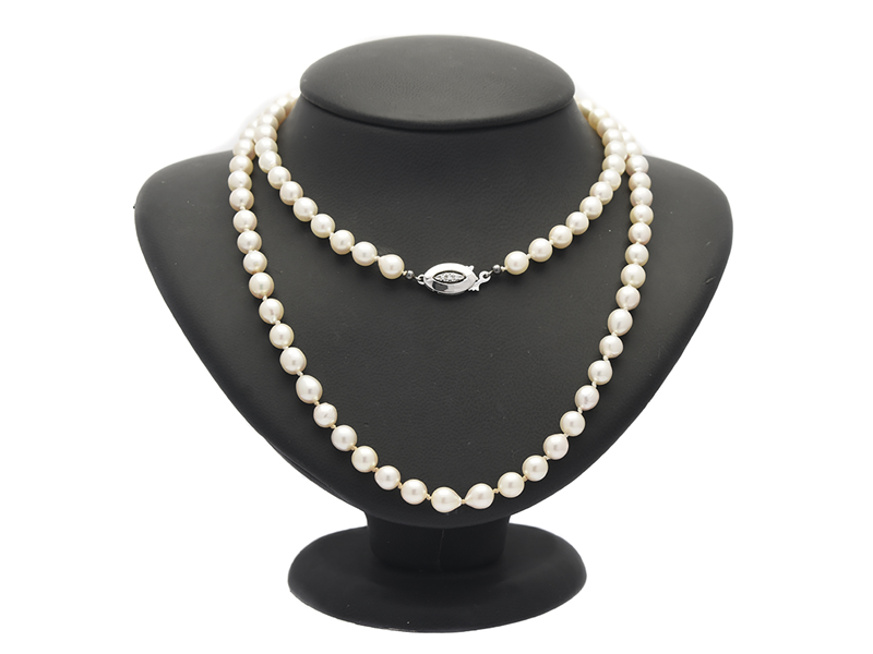 PEARL NECKLACE, cultured pearls, approx 6,5 -6,75 mm, clasp in 18K white gold with diamonds, length 83 cm, weight 45 g.