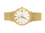 OMEGA, Genève, Cal 562, Serial no. 23037055, Ref no. BA 162.0009, Case no. 162.009, men´s wristwatch, 33 mm, 18K gold, self winding, plastic crystal, date, damaged dial, engraving, original bracelet in 18K gold (skadad), length 191-195 mm, total weight 72,4 grams, approx 1966.