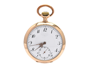 ZENITH, pocket watch, 50,5 mm, Serial no. 2373320, Case no. 219882, 14K gold, lever escapement, damaged dial, dents, approx 1919.