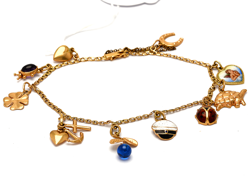 Bracelet 18K 10,0g with ten charms 18cm scratched