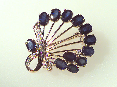 BROOCH, 14K gold with 12 sapphires 5.75ct. diamonds 0.30ct.