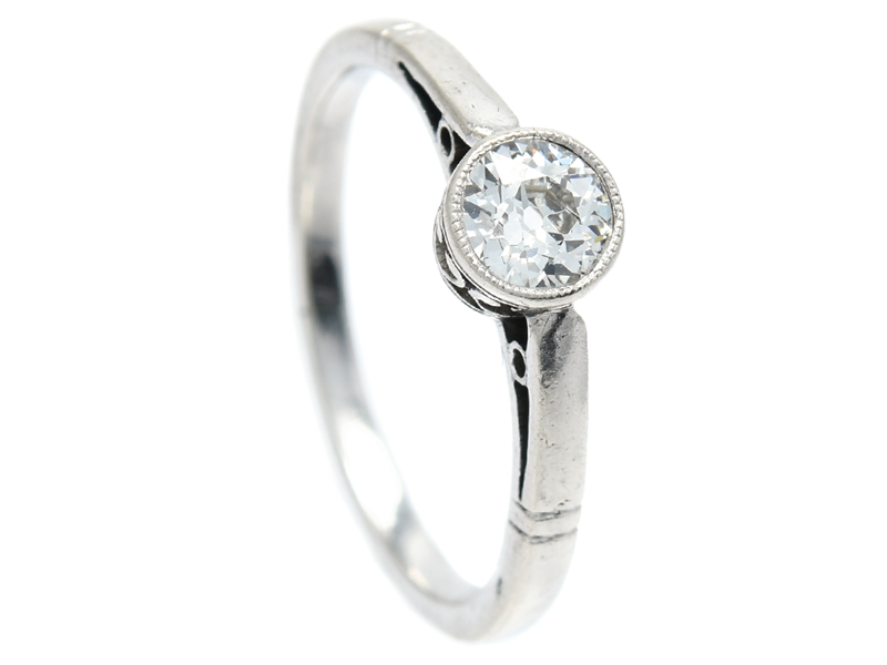 RING, 9K white gold, old brilliant cut diamond approx 0,30 ct, approx W-TCr/SI2-P1, inclusion that reaches the surface, size 14,75 mm, weight 1,4 g.