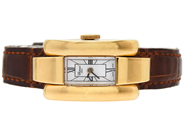 CHOPARD, Genève, La Strada, Serial no. 518561, Case no. 433-1, ladie´s wristwatch, 18,5 x 30 (43) mm, 18K gold, quartz, sapphire crystal, damaged dial, defect, leather strap, original buckle in 18K gold, approx 1999.