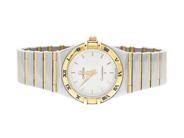 OMEGA, Constellation, ´95, Cal 1456, Serial no. 58405360, PIC no. 1272.30.00, Ref no. DB 795.1202, Case no. 795.1202, ladie´s wristwatch, 25,5 mm, steel/gold, quartz, sapphire crystal, integrated original bracelet (full bar), folding clasp, Ref no. 6552/864, approx 2002, case, paper box.