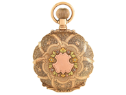 HAMILTON WATCH Co, pocket watch, 56 mm, hunter, Cal 941 (21 jewels, 18 size), Serial no. 623017, Case no. 411980, 14K multicoloured gold, lever escapement, s.c. "Box Hinge-case", cuvett in 14K gold, pattern, approx 1909.