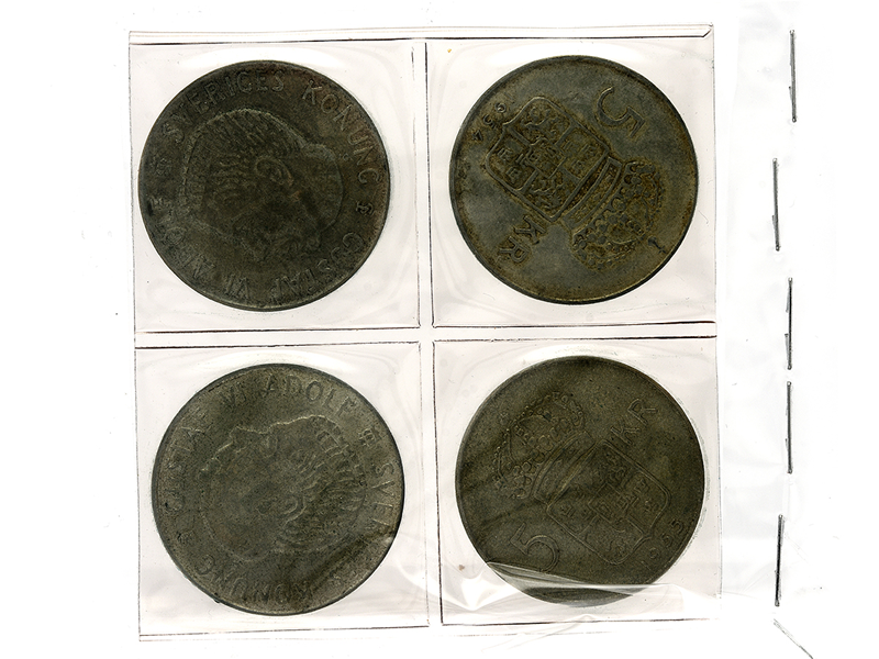 Coin, 4 items 5-kronor from 1954-1955 (Gustaf VI Adolf Sweden´s konung)