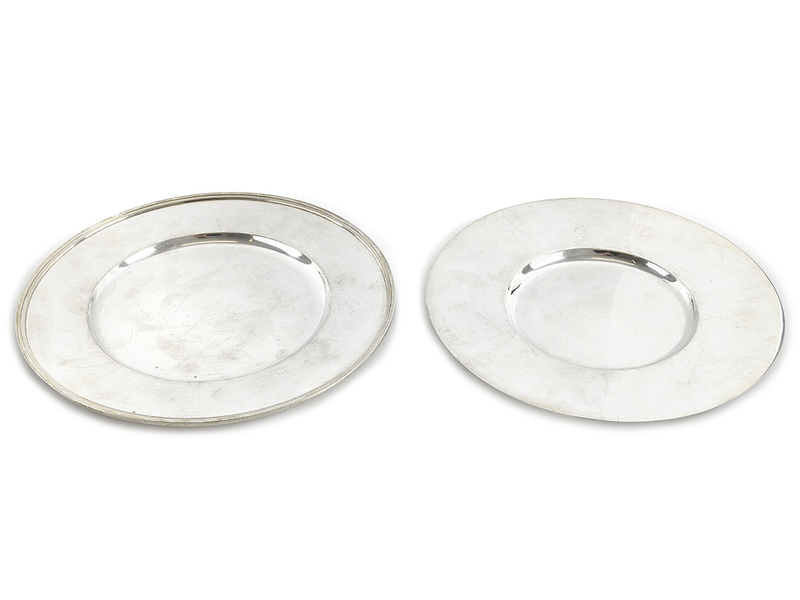 BORGILA, dish, 2 pcs, sterling silver, Stockholm 1931 and -43, diameter 24 cm resp. 25,7 cm, total weight 997,7 g, scratches, one dish with dent.