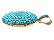 LOCKET, 18K gold/silver, turquoises, antique, French assay mark, 4,5 x2,7 cm, weight 16,3 g, some turquoises with notches.