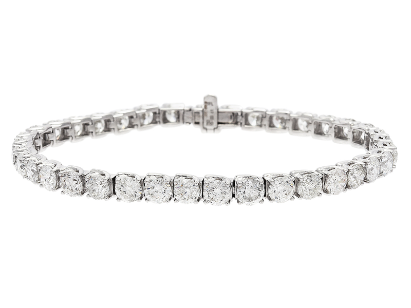 TENNIS BRACELET, 18K white gold, 37 brilliant cut diamonds approx 15,00 ctw, approx TW-TCa/SI-P, length 18,5 cm, weight 20,6 g, a few diamonds with notches on the culet.