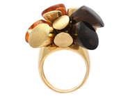 RING, 18K gold, amber and smoky quartz, Italy, size 17 mm, weight 18,9 g.