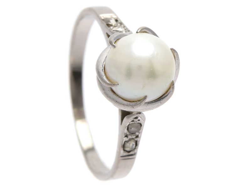RING, 18K white gold, cultured pearl 7,5 mm, rose cut diamonds, weight 3,3 g.