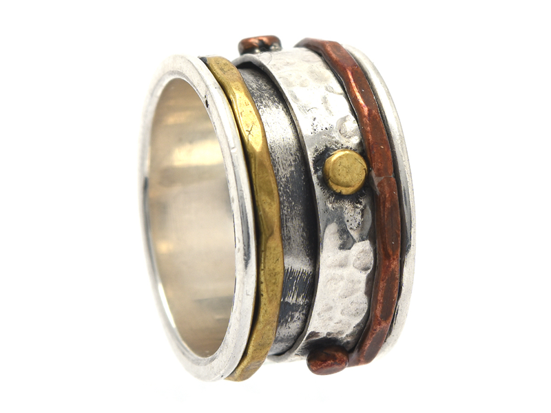 RING, sterling silver, small pcs i bronze and brass, size 17,25 mm, weight 7,1 g.