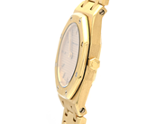 AUDEMARS PIGUET, Royal Oak, Cal 2610, Movement no. 344451, Case no. C85079 / 1786, ladie´s wristwatch, 24,5 mm, 18K gold, quartz, sapphire crystal (notch), date, damaged dial, integrated original bracelet, folding clasp (replaced), length 163 mm total weight 78,1 grams, approx 1990.