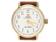 RUHLA, men´s wristwatch, 33 mm, yellow metal, manual winding, plastic crystal, damaged dial, damaged case, defect, leather strap, approx 1960.