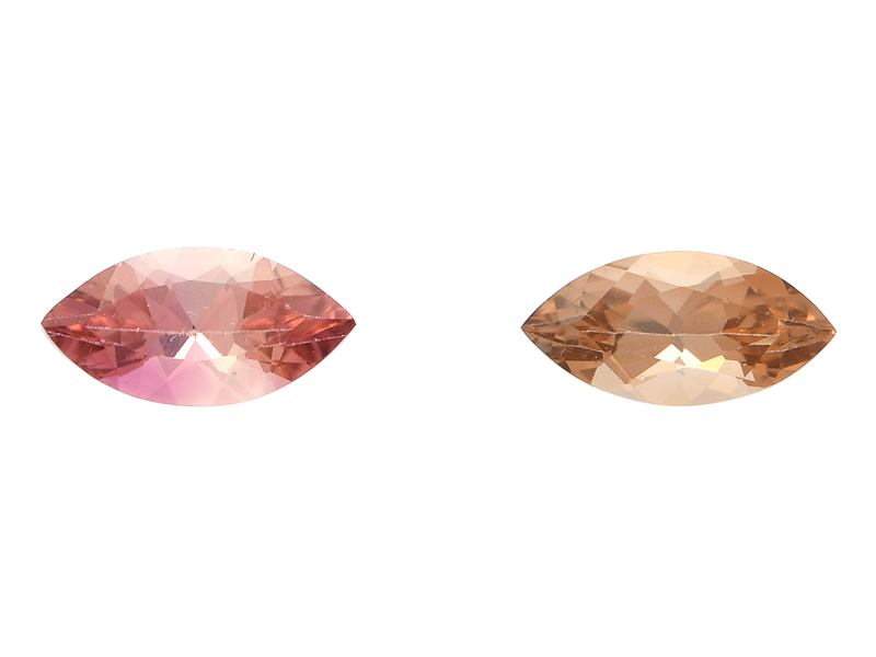 TOURMALINES, 2 pcs, marquise cut, 2,16 ctw, approx 10x5 mm, both has worn facet edges.