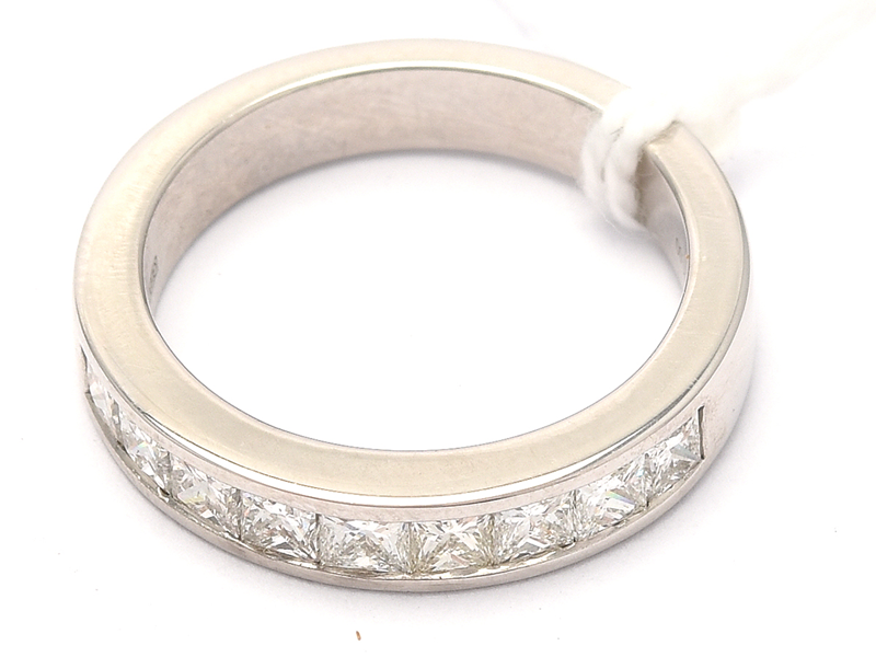 Ring 18K 5,6g Ø16¾ white gold with princess cut diamonds 9xca0,10ct