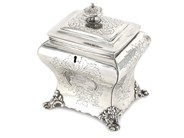 SOCKERSKRIN, silver, flower decor, on four feet, Samuel Hayne & Dudley Cater, London 1840, height 15 cm, length 11,5 cm, width 9,7 cm, weight 419,5 g, key missing.