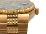 ROLEX, Oysterquartz, Day-Date, Chronometer, s.c. "Egyptian", Ref no. 19028, Serial no. 9583251, Cal 5055, Movement no. 0121819, Case no. 19000, men´s wristwatch, 36 mm, 18K gold, quartz, sapphire crystal (notch), day, date, Integral bracelet, folding clasp, Ref no. 19028-G, total weight 164,4 grams, certificate, November 1989, box, paper box.