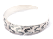 Bangle S925 38,9g Ø6,3cm, width: 0,6-1,7cm, open model, patterned with oxiderade details