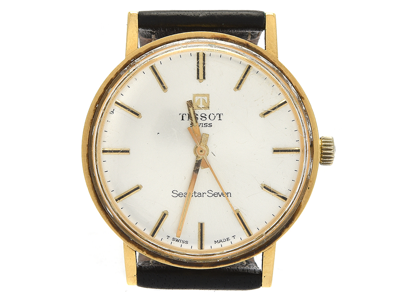 Men´s wristwatch Tissot Seastar Seven Ø36mm, 18K manual winding, engraved. Scratched plastic crystal and small dent i case