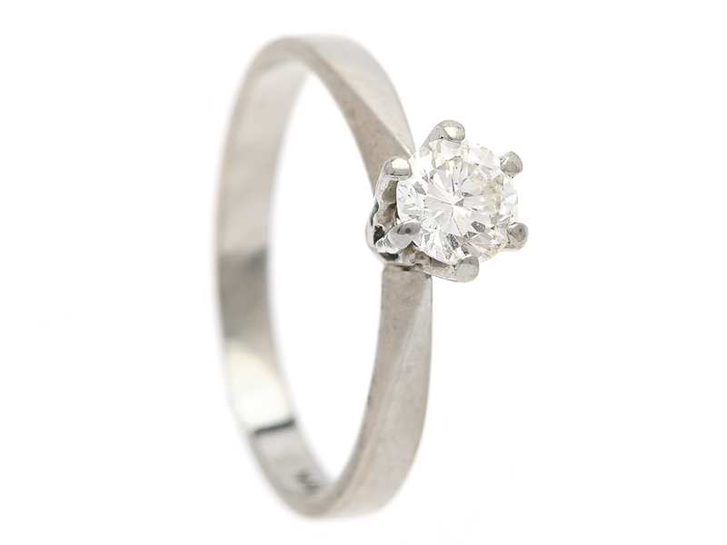 SOLITAIRE RING, 18K white gold, brilliant cut diamond 0,40 ct according to engraving, approx TW/VS, size 16,25 mm, weight 2,4 g, the diamond has small notch on the culet and notch on the girdle.
