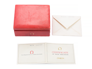 OMEGA, Constellation, Calendar De Luxe, Chronometer, s.c. "Pie-Pan", Cal 561, Serial no. 23057908, Ref no. BA 168.0006, Case no. 168.005/6, men´s wristwatch, 34,2 mm, 18K gold, self winding, plastic crystal, date, leather strap, Chronometer certificate, approx 1966, box.