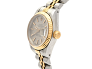 ROLEX, Oyster Perpetual, Datejust (T Swiss Made T), Chronometer, Ref no. 69173, Serial no. L844880, Cal 2135, Movement no. 1426524, Case no. 69000A, ladie´s wristwatch, 26 mm, steel/gold, self winding, sapphire crystal (scratches/notch), date, damaged dial/hands, defect (needs overhaul), dent case, Jubilee bracelet, folding clasp, Ref no. 62523HD18-O2/468 B, approx 1990.