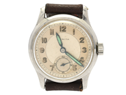 ZENITH, men´s wristwatch, 30 mm, Cal 106, Serial no. 3332654, Case no. 8298366, steel, manual winding, plastic crystal, small seconds hand, relumed hands, damaged dial, approx 1942.