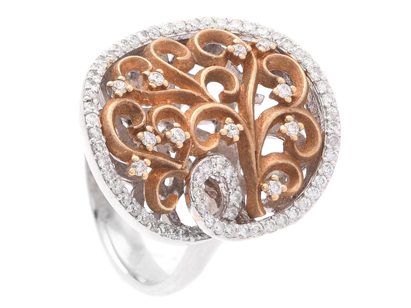 RING, 18K gold/rhodium plated gold, 76 brilliant cut diamonds approx 0,70 ctw, approx TW-Cr/SI-P1, size 17,25+ mm, weight 9,0 g, a few diamonds with surface marks.