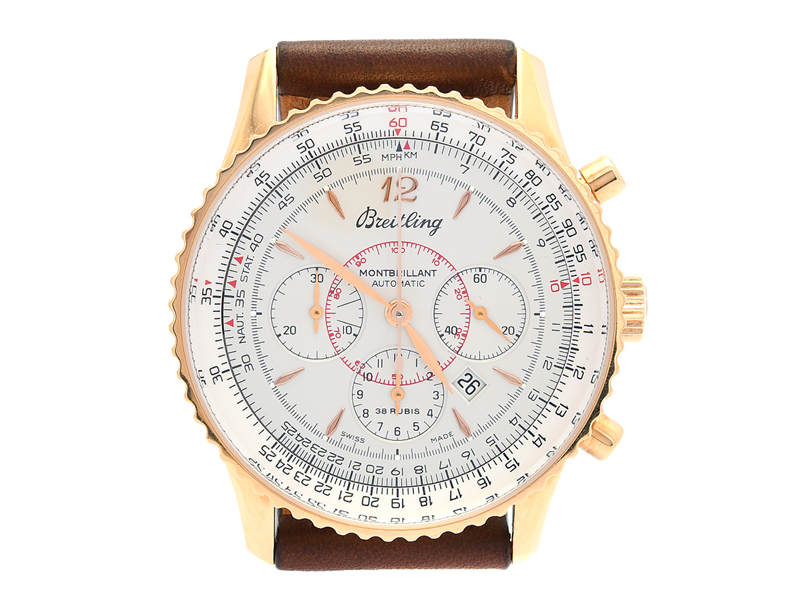 BREITLING, Navitimer, Montbrillant, Chronometre, Cal 41 (ETA 2892A2), Movement no. 2042765, Serial no. 2042765, Ref no. H4133012/G195, Case no. 4505 B4 / 0918, chronograph, men´s wristwatch, 38 mm, 18K pink gold, self winding, sapphire crystal, date, rotatable slide roule, leather strap, original buckle i 18K pink gold, certificate, March 2007, box, paper box.