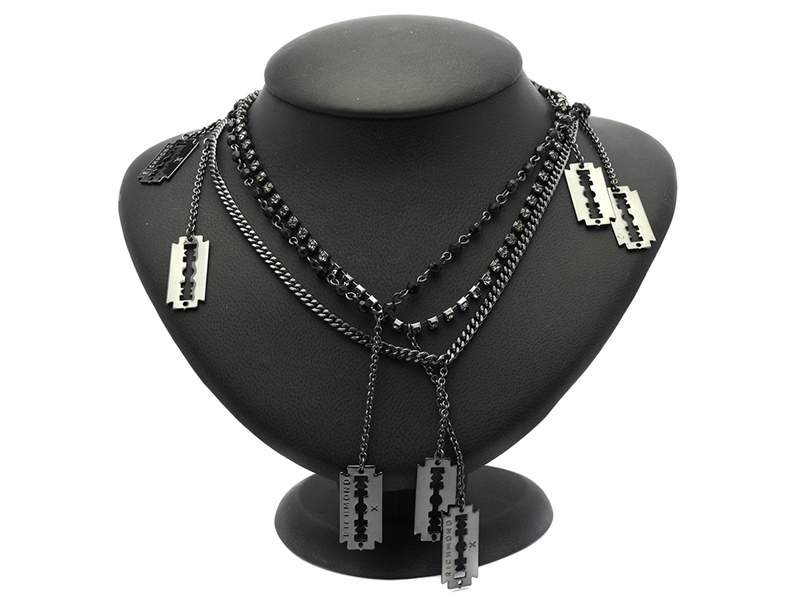 NECKLACE, RICHMOND, 3 pcs, dark grey metal, grey paste, black stones,